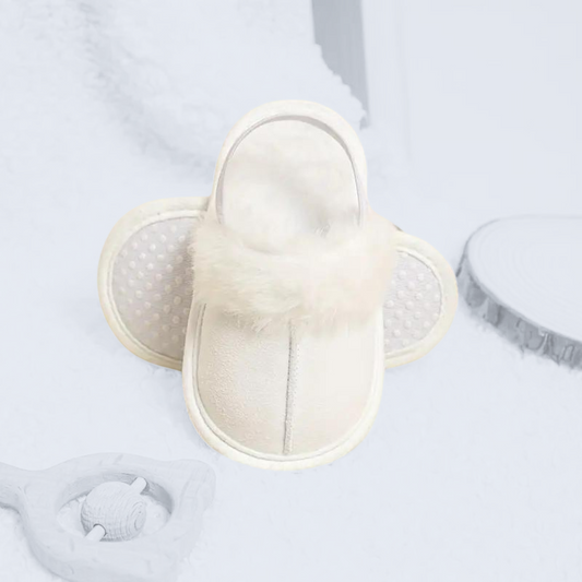 WHITE FLEECE SLIPPERS . Up to 18 Months